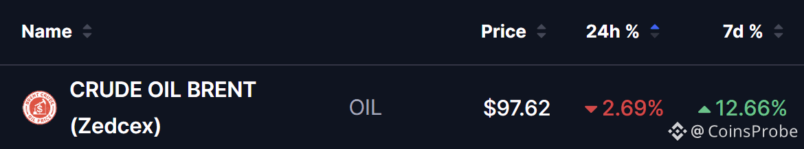 As of today, April 25, 2026, Crude Oil Brent is trading at $97.62, down 2.69% over the last 24 hours. While the asset has maintained a 12.66% gain over the past week, the momentum is stalling.