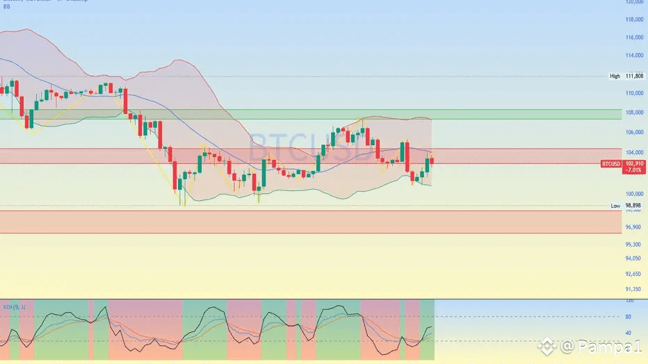 Điều gì đang diễn ra: mức kháng cự vẫn xuất hiện gần ~$105K–$107K, và một sự bứt phá rõ ràng ở trên mức đó có thể khôi phục lại hy vọng tăng giá. Nhưng nếu mức hỗ trợ này bị phá vỡ, điểm dừng tiếp theo có thể thấp hơn đáng kể — $95K hoặc thậm chí thấp hơn.