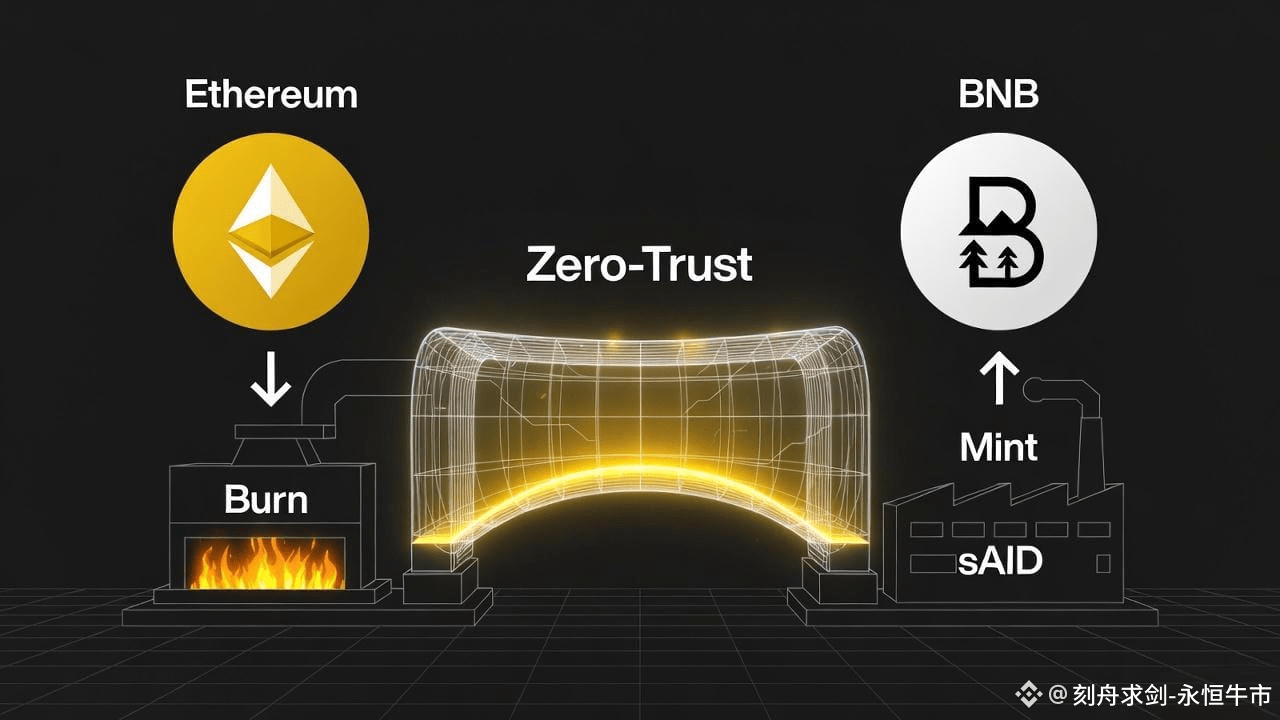 sAID 在以太坊上销毁,在 BNB Chain 上铸造。没有中间商赚差价,也没有巨大的资金池等着黑客来偷。