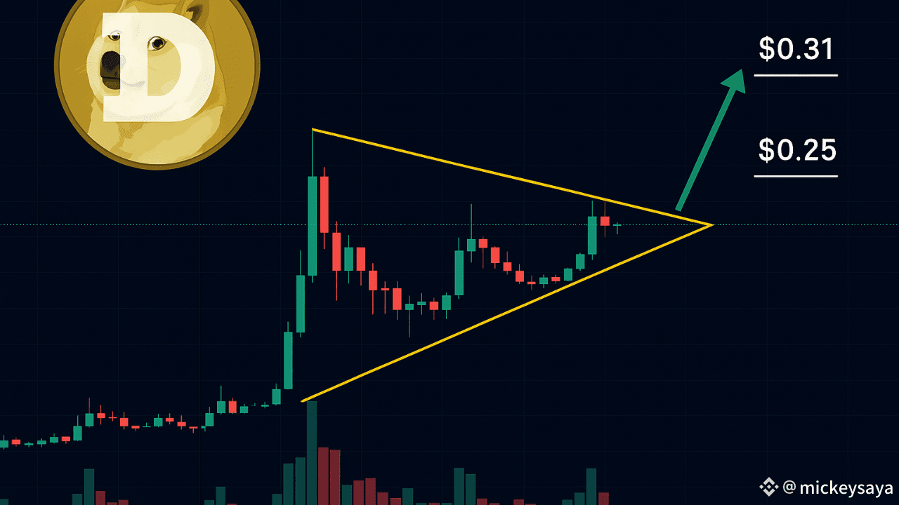 Từ góc độ kỹ thuật, Dogecoin đang hình thành một mẫu tăng giá tích cực. Các nhà phân tích thị trường đang theo dõi một khả năng phá vỡ tam giác gần mức $0.224, được hỗ trợ bởi sự gia tăng 21% trong khối lượng giao dịch. Nếu sự phá vỡ này được xác nhận, các mục tiêu tăng giá giữa $0.25 và $0.31 trở nên khả thi hơn.