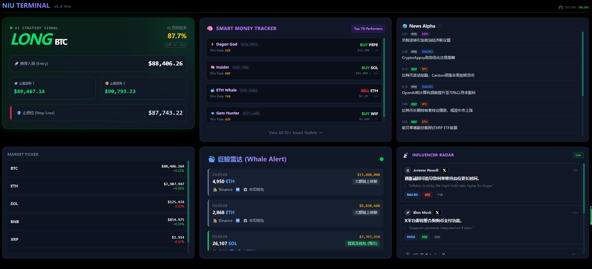 利用周末时间手搓了一个 AI 驱动的 Web3 交易终端。拒绝信息噪音,只抓核心 Alpha。🐂