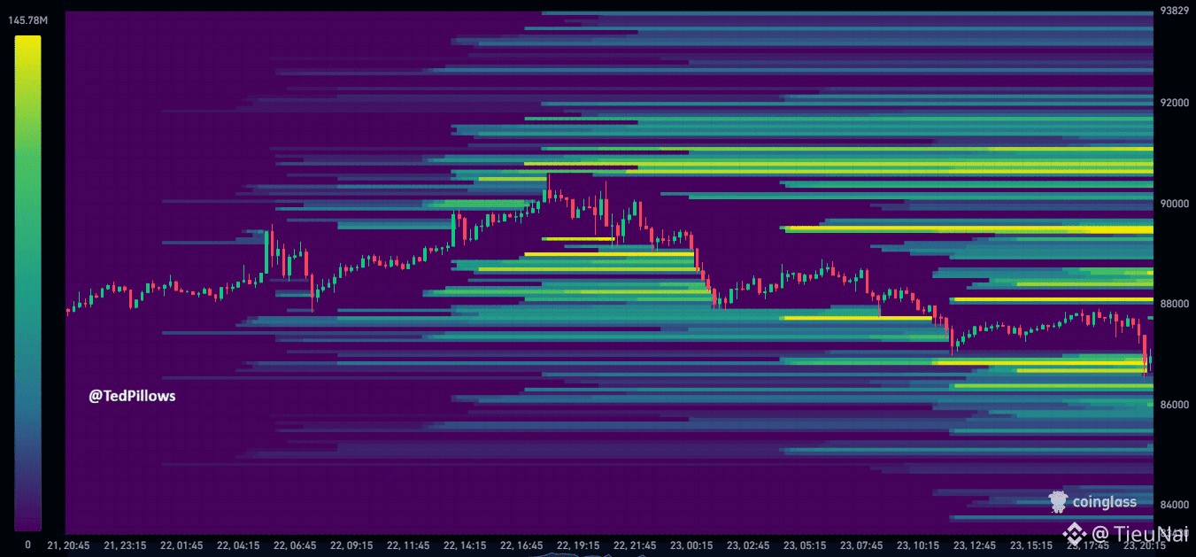 Có một nhóm thanh khoản khá tốt tập trung quanh mức giá $89,500-$90,500.