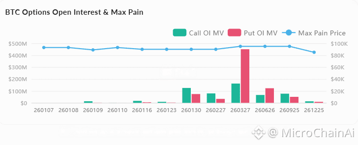 期权市场:总持仓$32.3B,24小时增长2.8%;短期到期合约最大痛点集中在$89,000-$95,000区间,当前价格附近$93,000为关键博弈点。