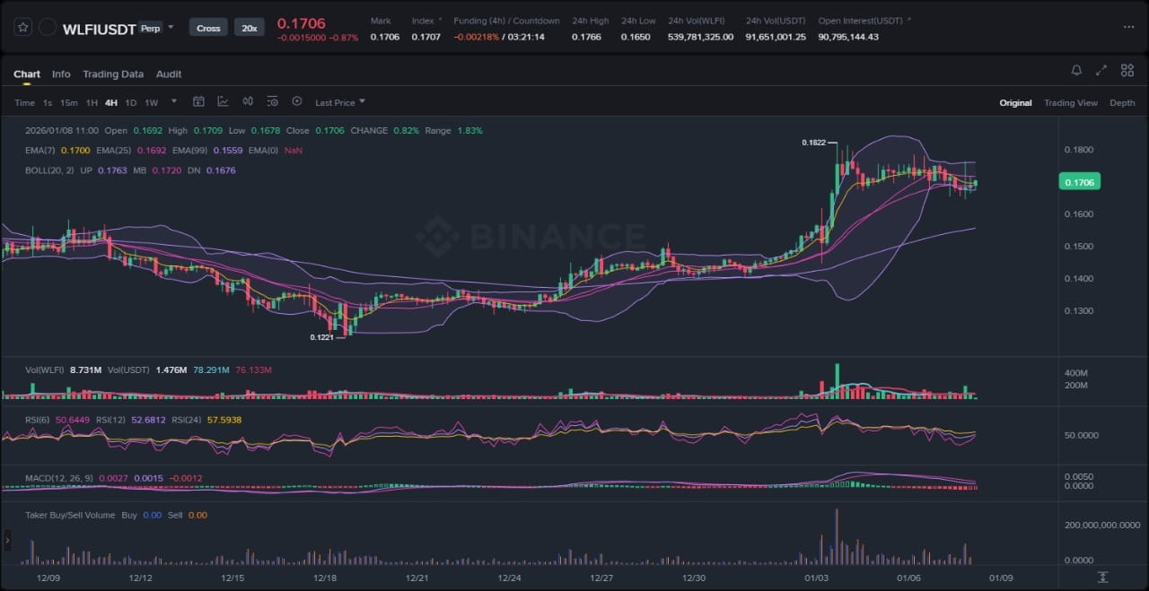 Thị trường tiền điện tử rộng lớn hơn vẫn trong giai đoạn hợp nhất sau sự biến động của mùa lễ, với Bitcoin ổn định trên các mức hỗ trợ chính quanh 90,000 trong khi các altcoin như WLFI thể hiện sức mạnh chọn lọc. WLFI, giao dịch trên Binance với vốn hóa thị trường dao động trong khoảng giữa, đã cho thấy sự kiên cường giữa sự không chắc chắn toàn ngành. Các hồ sơ khối lượng cho thấy các túi thanh khoản đang xây dựng ở các mức thấp hơn, gợi ý về sự tích lũy hơn là phân phối hoàn toàn. Tính đến dữ liệu mới nhất, giá của WLFI hiện ở khoảng 0.2029, phản ánh một sự tăng nhẹ từ các mức thấp gần đây. Vị trí này đến trong một bối cảnh của sự quan tâm ngày càng tăng của thể chế đối với tài sản tiền điện tử được quy định, nơi các sáng kiến stablecoin có thể thúc đẩy các động thái đảo chiều nếu các cơn gió vĩ mô tiếp tục.