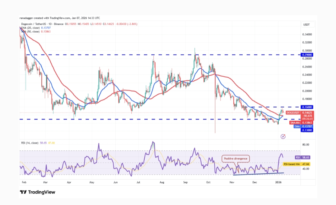 Cấu trúc tăng giá này sẽ yếu đi nếu DOGE giảm xuống dưới các đường trung bình, mở ra rủi ro giảm xuống phía $0.13 và $0.11.