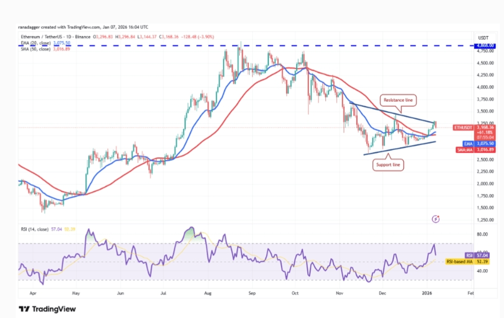 Một cú hồi phục có thể đẩy ETH/USDT về phía $3,659 và sau đó là $4,000. Tuy nhiên, một sự phá vỡ dưới hỗ trợ tam giác sẽ báo hiệu một cái bẫy bò tiềm năng, phơi bày xu hướng giảm về phía $2,623 và $2,111.