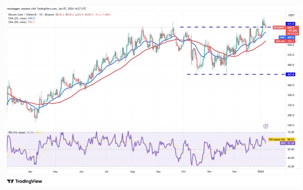 BCH đã giảm về mức bứt phá gần $631, có khả năng hoạt động như một hỗ trợ mạnh. Một cú bật có thể đẩy giá lên mức $651 và $720.