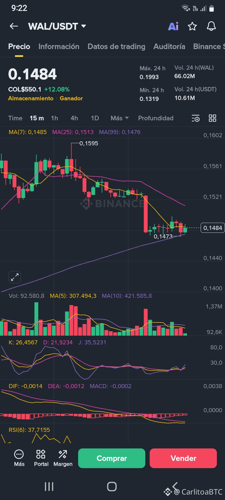 En una mecha alcanzo un valor de 0.1595 dólares esos encontró resistencia y cayo a un precio de 0.1473 tocando piso y a @Walrus 🦭/acc , sube al canzo un valor actual de 0.1484 dolares $WAL esigue asi su recorrido en la conquista del mercado #Walrus