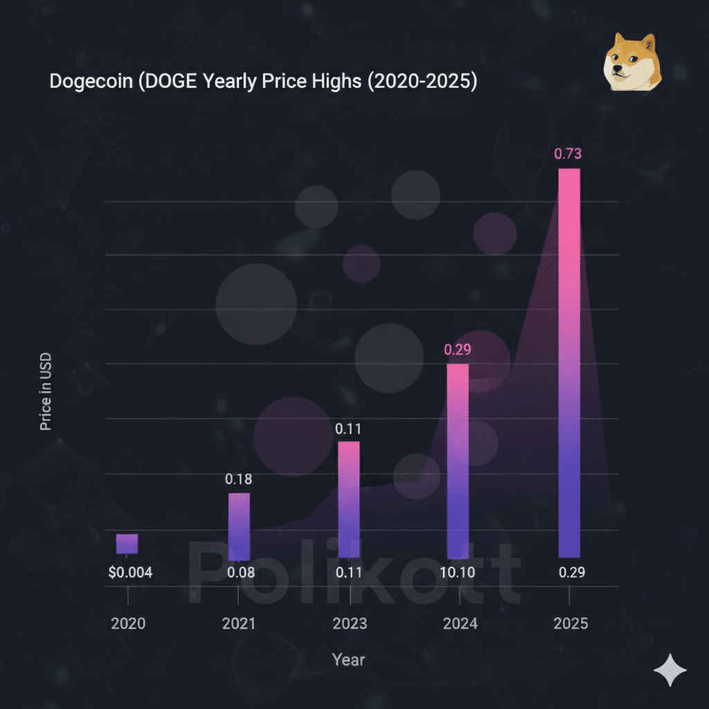 📈 2020: Những bước khởi đầu khiêm tốn ✨ Vào năm 2020, Dogecoin đang giao dịch ở mức chỉ 0,004 USD. Nó chủ yếu là một loại tiền tệ "tặng tiền tip" vui vẻ cho cộng đồng mạng, nhưng nền tảng cho một điều lớn lao đã được xây dựng.
