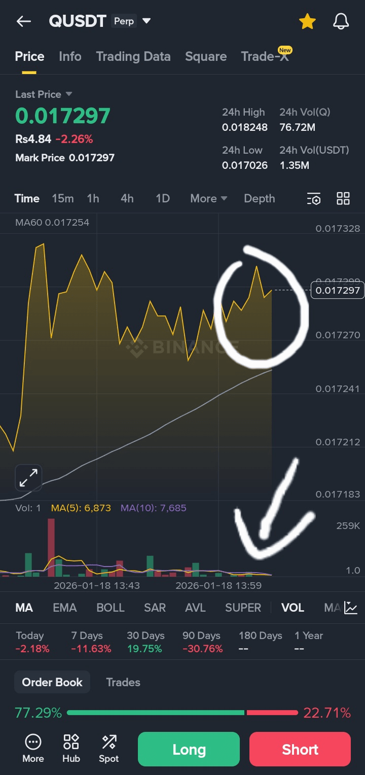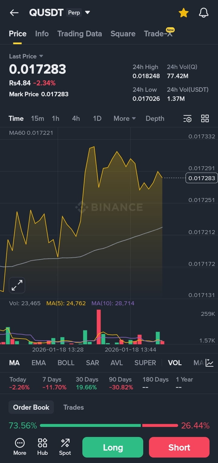 Hôm qua, tôi đã phân tích hợp đồng tương lai Q (QuackAI) và nghĩ rằng giá có thể sẽ tăng vì thiết lập có vẻ hứa hẹn, vì vậy tôi đã vào lệnh mua dài.