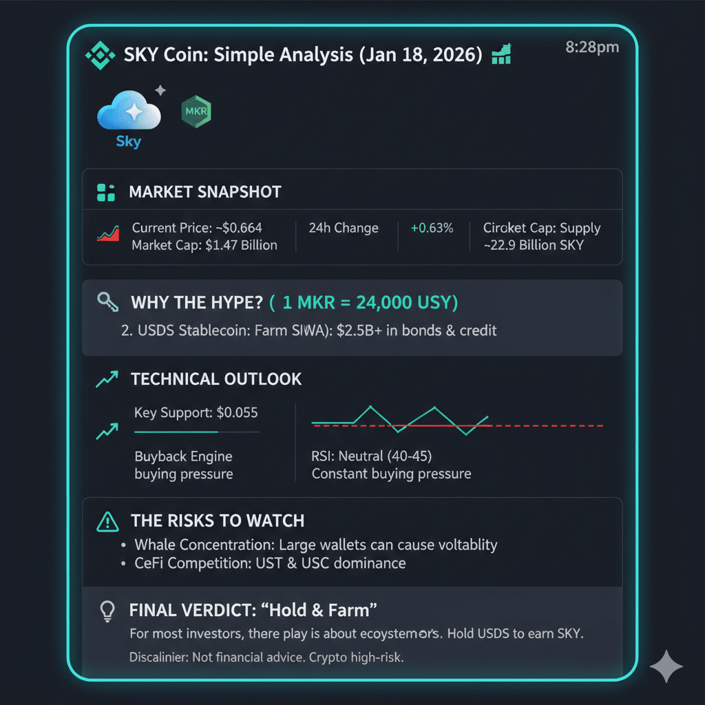 $SKY Sau khi nâng cấp "Endgame", dự án đã chuyển từ một mô hình quản trị phức tạp sang một hệ sinh thái thân thiện hơn với người tiêu dùng. Dưới đây là một phân tích đơn giản về vị trí của SKY hiện tại.