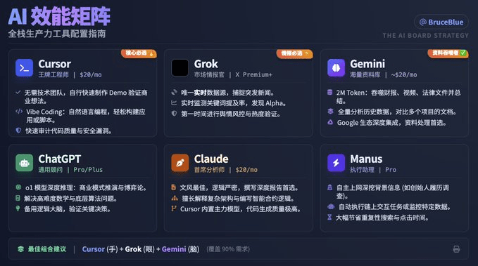 Nói thật:Trừ khi bạn có chứng rối loạn ám ảnh cưỡng chế rất mạnh, nếu không không khuyến nghị. Trong công việc thực tế của tôi, 90% thời gian đã bị Gemini (xử lý văn bản/ mã logic phức tạp) + Grok (theo dõi thị trường theo thời gian thực) + Cursor (viết chương trình) chia sẻ. Các công cụ còn lại chủ yếu là để thử nghiệm, chứ không phải là nhu cầu thiết yếu.