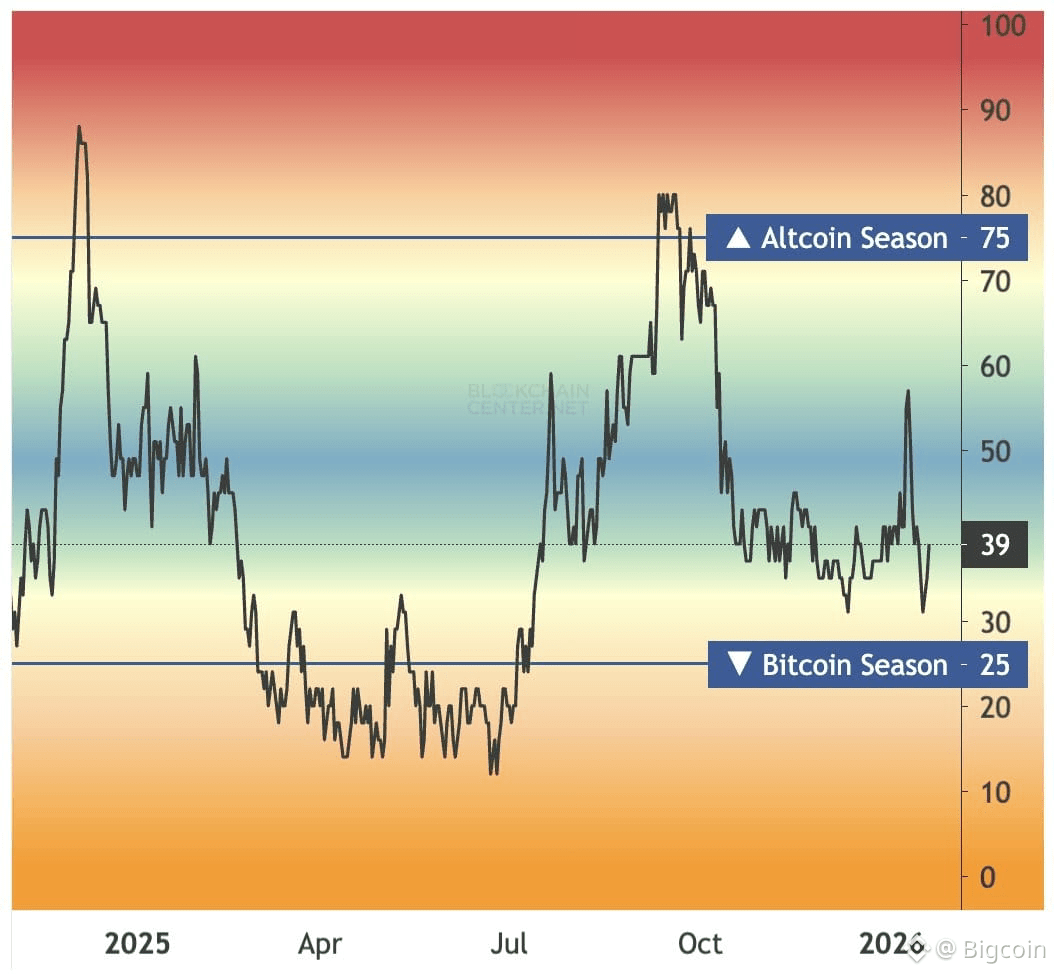 Altcoin season index giảm không phải vì “alt yếu”, mà vì market đang chọn phòng thủ. Trong bối cảnh Fed bị kéo vào tranh chấp chính trị, thuế quan quay lại và câu chuyện vĩ mô trở nên căng hơn, thì việc dòng tiền rút khỏi alt là phản ứng rất tự nhiên.