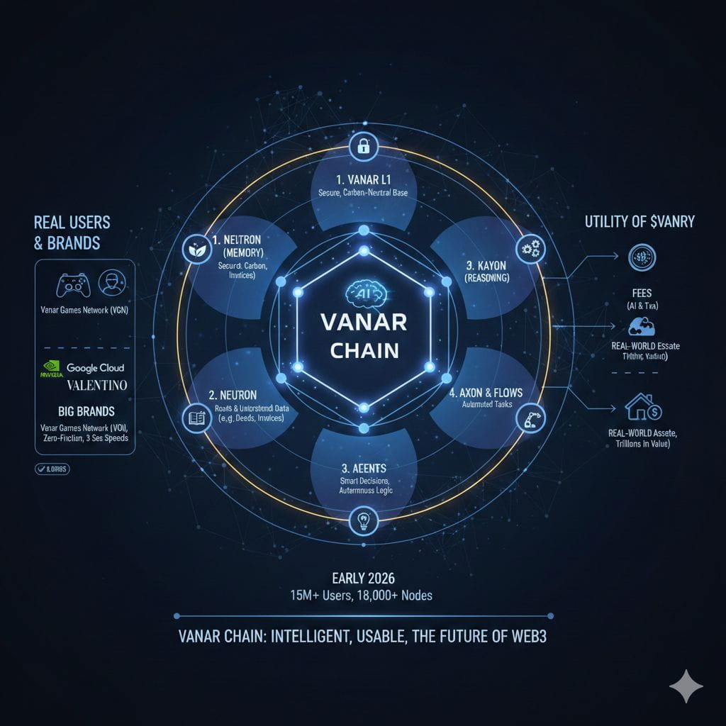 Vanar is more than just a ledger. It uses a unique 5-layer architecture that allows apps to learn and adapt. Instead of being "bolted on," AI is the very foundation of the chain.