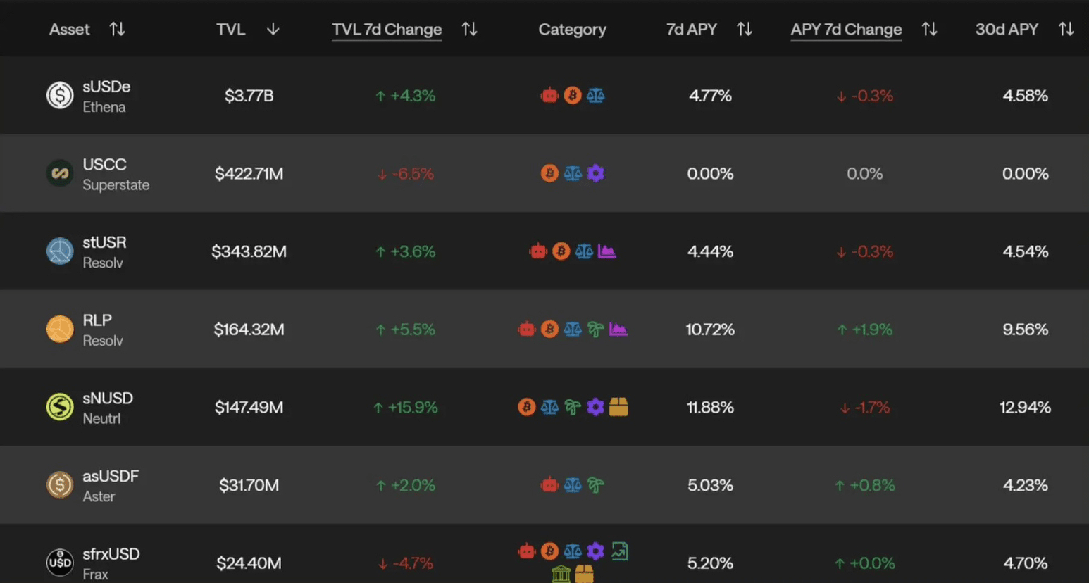 Các kho như HLP trên Hyperliquid cho phép người dùng gửi USDC và đóng vai trò là đối tác của các nhà giao dịch, kiếm phí và hưởng lợi từ thua lỗ của các nhà giao dịch. GLP trên GMX thu hút phí giao dịch và giá trị thanh lý. USDe của Ethena rút ra tỷ lệ tài trợ thông qua vị trí delta-neutral, biến đổi nhu cầu đòn bẩy thành lợi suất stablecoin.