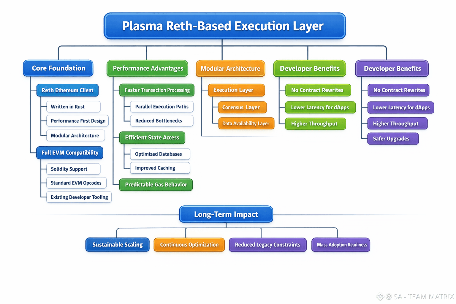In the long term Plasma’s execution strategy positions the network for sustained growth. As demand increases and applications become more complex the efficiency gains from Reth compound over time. Instead of relying on short-term scaling hacks Plasma builds on a modern execution foundation designed for continuous optimization. By rethinking the execution layer itself Plasma demonstrates how next-generation EVM networks can deliver meaningful performance improvements without abandoning the ecosystem that developers already trust.