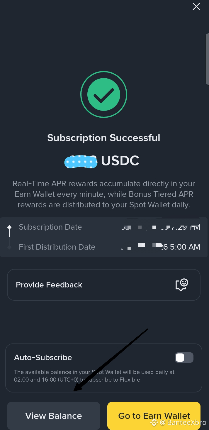 Distributed to your Earn wallet