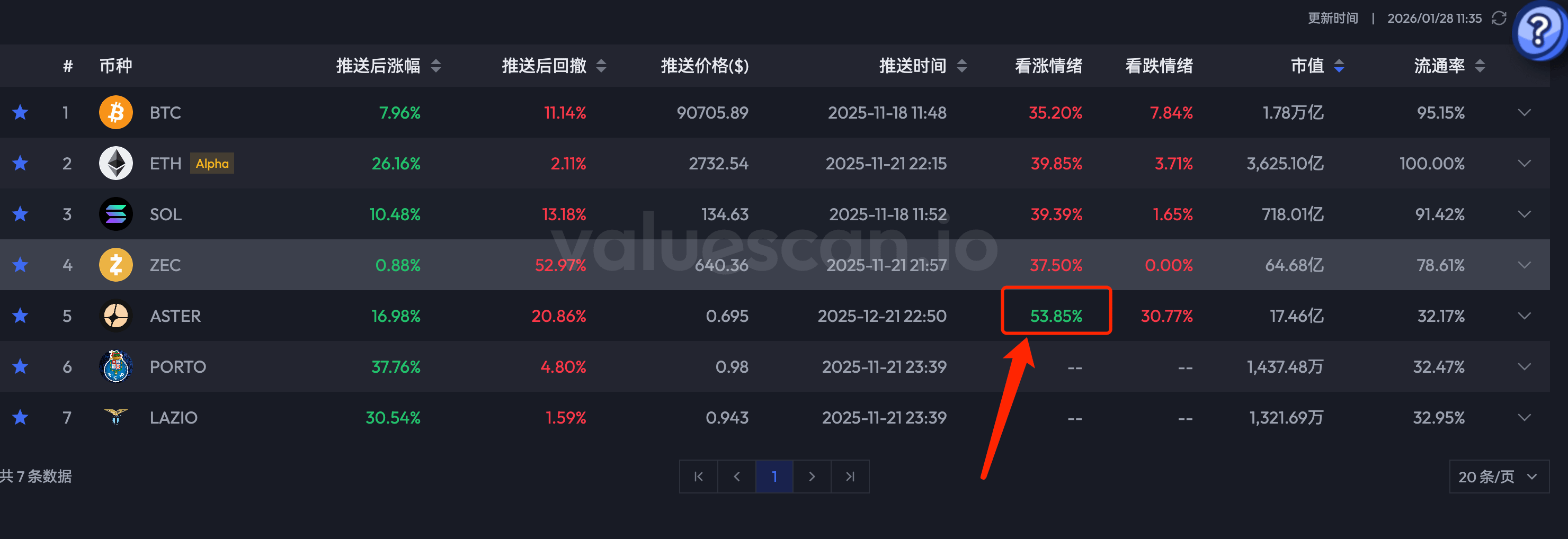 Theo dữ liệu trên chuỗi của ValueScan: Tâm lý tăng giá của ASTER vẫn đạt 53,85%.