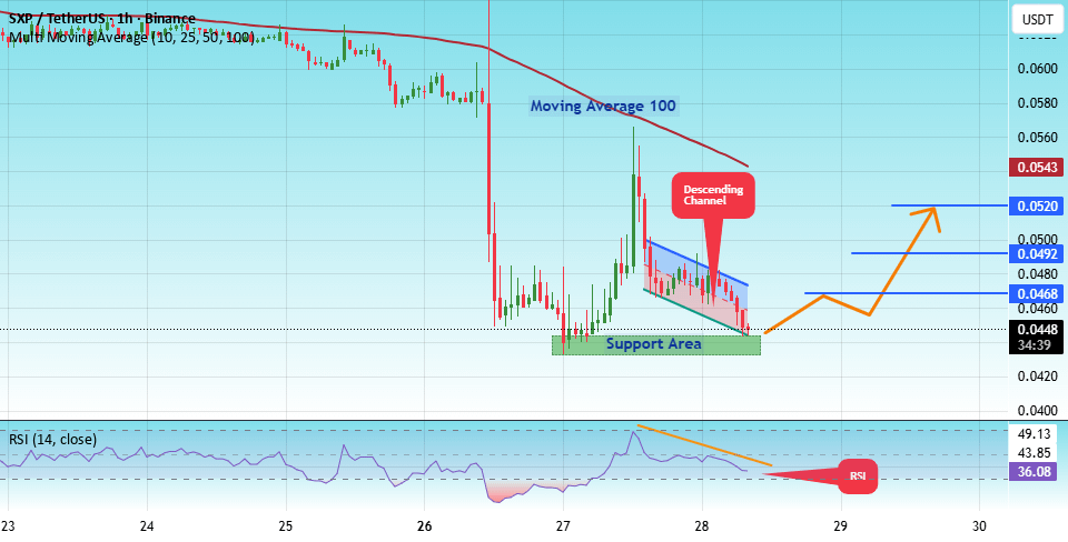 Có một vùng hỗ trợ chính màu xanh ở 0.0440. Giá đã bật lên từ mức này vài lần và dự kiến sẽ bật lên một lần nữa.