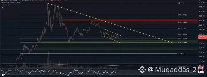 Looking at $ZEC , my base case remains the ~$300 zone, and it hasn’t changed. The micro structure is rolling over inside a larger macro descending framework, and the cleanest draw is where the lower bound of the short-term channel converges with the lower rail of the macro structure. That area lines up perfectly with prior acceptance and unresolved liquidity, which makes it the most logical magnet.