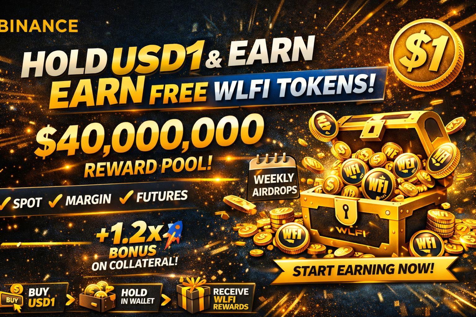 Binance đã khởi động một Chiến dịch Airdrop tuyệt vời cho người dùng của mình, nơi bạn chỉ cần giữ USD1 để kiếm được token WLFI MIỄN PHÍ — từ Quỹ Thưởng tổng cộng $40 Triệu! 💰🔥