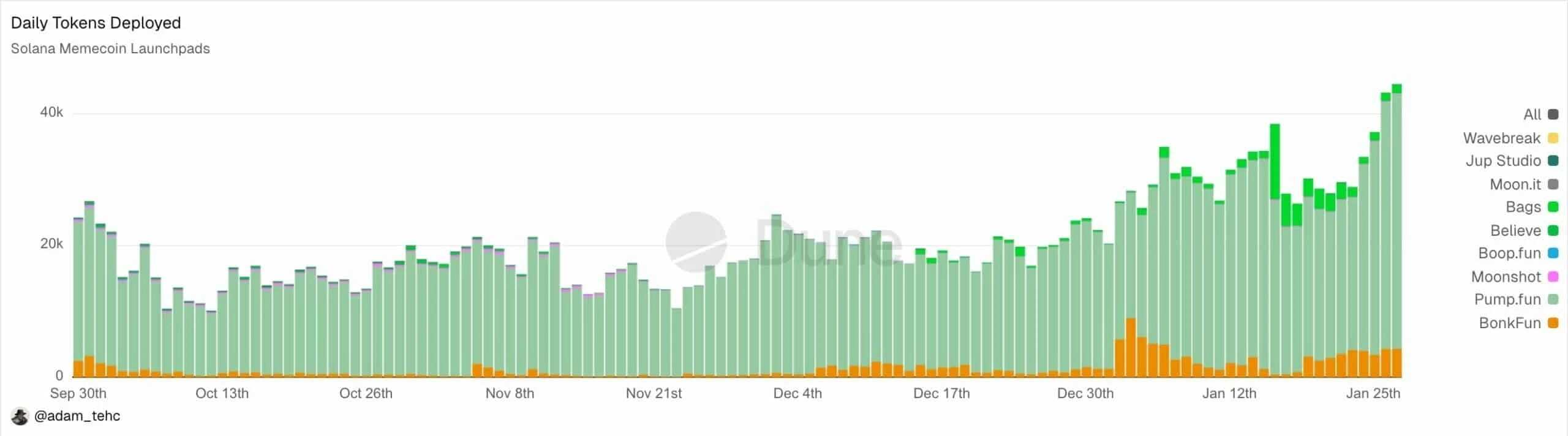 Gần đây, hoạt động trên #solana #memecoin nóng đến mức bùng nổ 📈, mỗi ngày có đồng tiền mới ra mắt, với số lượng triển khai lên đến 40,000+. Rất nhiều người có phản ứng đầu tiên là “đầu cơ điên cuồng”, nhưng thực tế, đây cũng là một bài kiểm tra “áp lực thực chiến” quy mô lớn đối với mạng Solana.