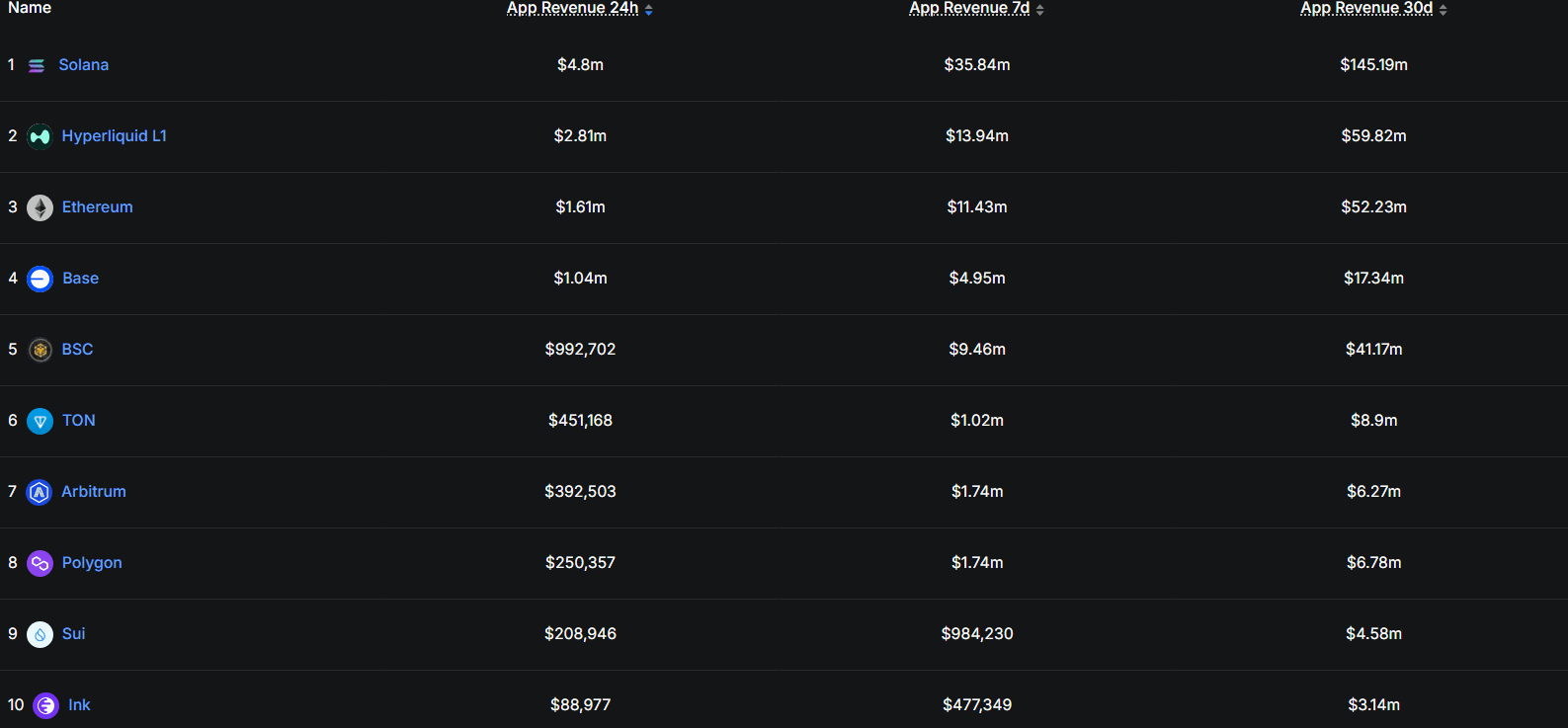 Doanh thu từ ứng dụng cũng theo đó tăng lên, khoảng 1.45 triệu đô la, dẫn đầu trong ngành. Điều quan trọng là, phần doanh thu này là do chu kỳ memecoin mang lại, chứ không phải là thu nhập ngẫu nhiên trong thời kỳ suy thoái.