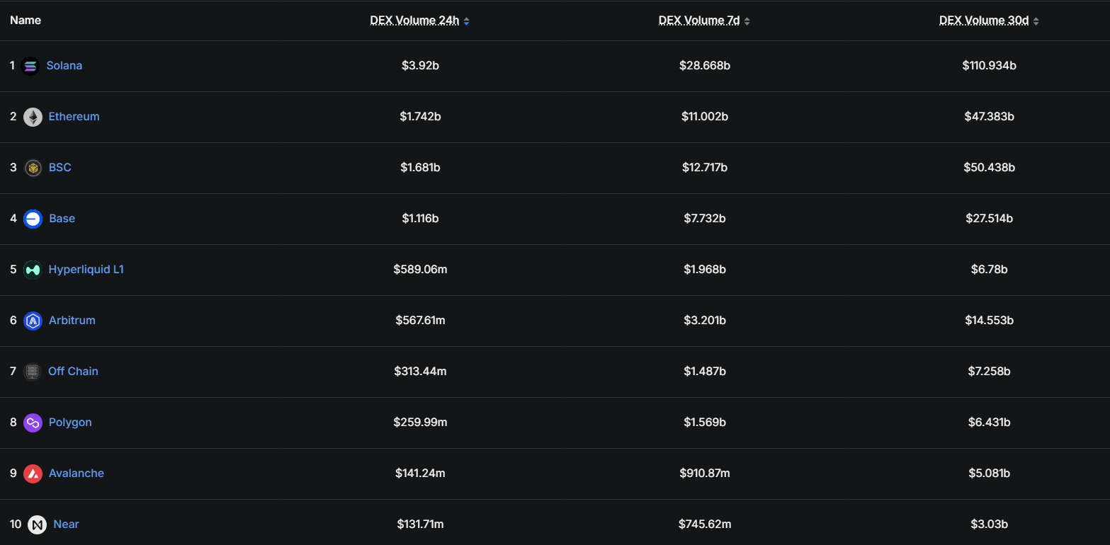 Trong 30 ngày qua, khối lượng giao dịch DEX của Solana đã vượt quá 1,100 tỷ đô la, gấp hơn hai lần ETH💸.