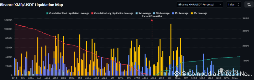 Monero price rally is stealing the spotlight today. While most major cryptocurrencies remain under pressure, XMR has surged more than 12% in a single session, climbing to the $488 region. The move did not emerge from thin air. It followed a sharp leverage reset across derivatives markets, where short positions were forced out as price accelerated through nearby liquidity levels. This rebound has turned heads because it arrived against the broader market trend, a sign that XMR’s move is being driven by internal market mechanics rather than general risk sentiment. As price lifted, momentum built quickly, feeding into a cascade that pushed Monero back toward the upper end of its recent range.