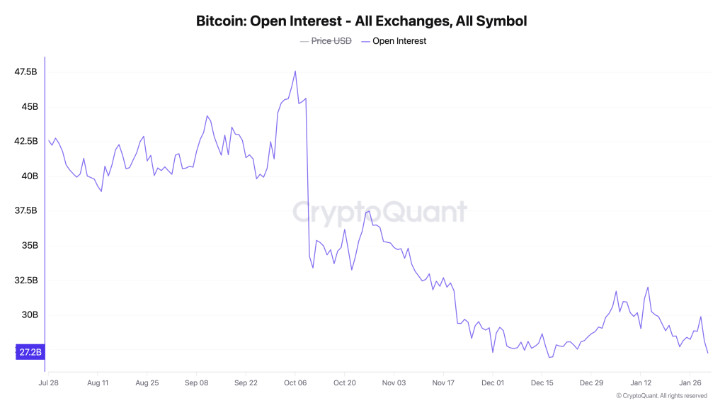 Lợi ích mở trên các sàn giao dịch đã giảm mạnh, báo hiệu sự giảm đòn bẩy rộng rãi hơn là việc mua vào dip một cách mạnh mẽ. Sự giảm này cho thấy các thương nhân đang đóng vị thế thay vì xây dựng các vị thế dài mới để bảo vệ mức hiện tại. Quan trọng là, lợi ích mở đã gặp khó khăn trong việc phục hồi cùng với giá, củng cố ý tưởng rằng sự tin tưởng vẫn yếu.