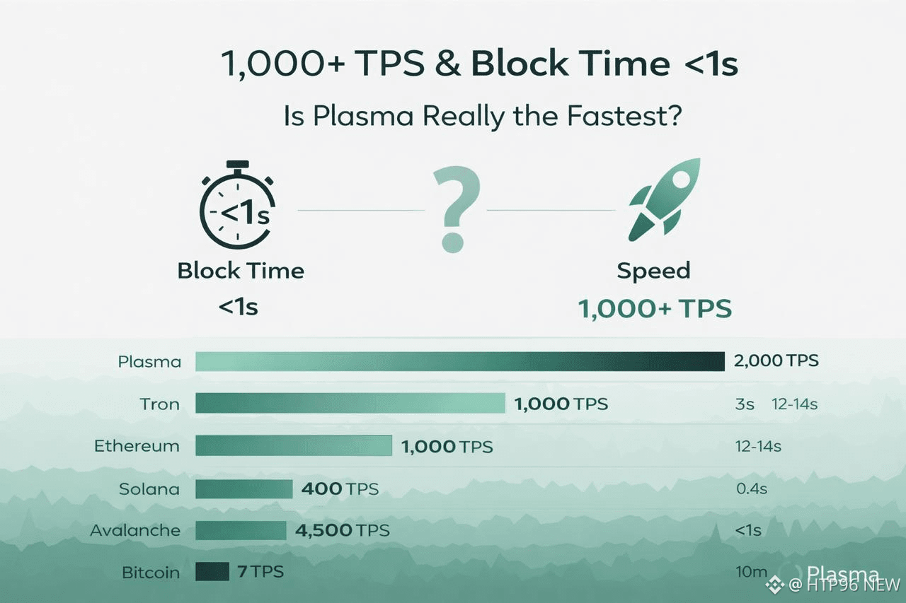 Hello anh em tính đi ngủ nhưng thôi viết bài này xong rôi mới ngủ lúc mình đọc con số “1000+ TPS, block time dưới 1 giây” của Plasma và phản xạ đầu tiên không phải là ấn tượng, mà là nghi ngờ. Không phải vì nó quá cao, mà vì mình đã thấy quá nhiều chain tự gọi mình là “nhanh nhất”.
