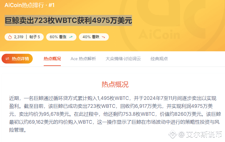 723枚WBTC价值约5.2亿美金,相当于比特币矿工近一个月的全网产出!如此体量离场,市场承接面临严峻考验。
