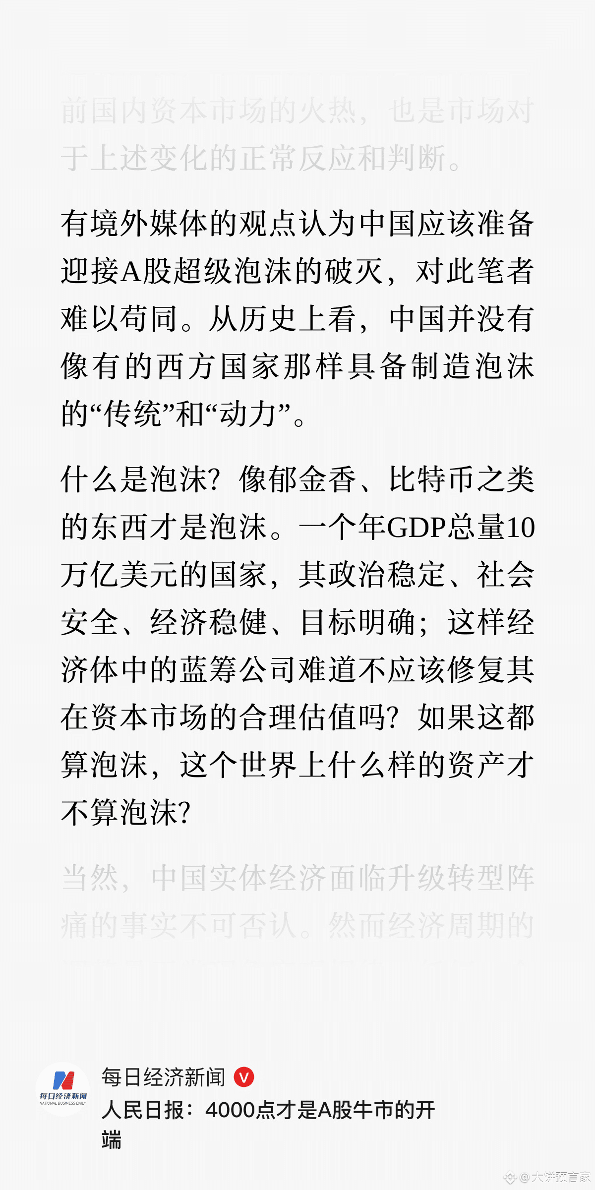 最近A股牛市站上4000点,导致十年前的一篇文章忽然火了。人民日报在2015年4月21日发表的文章《4000点才是A股牛市的开端?》。