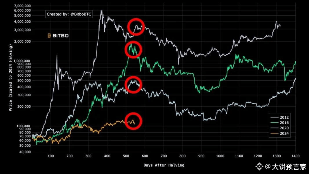 2013年、2017年、2021年,历史上每次牛市见顶的时间,都发生在减半后的第500-600天。