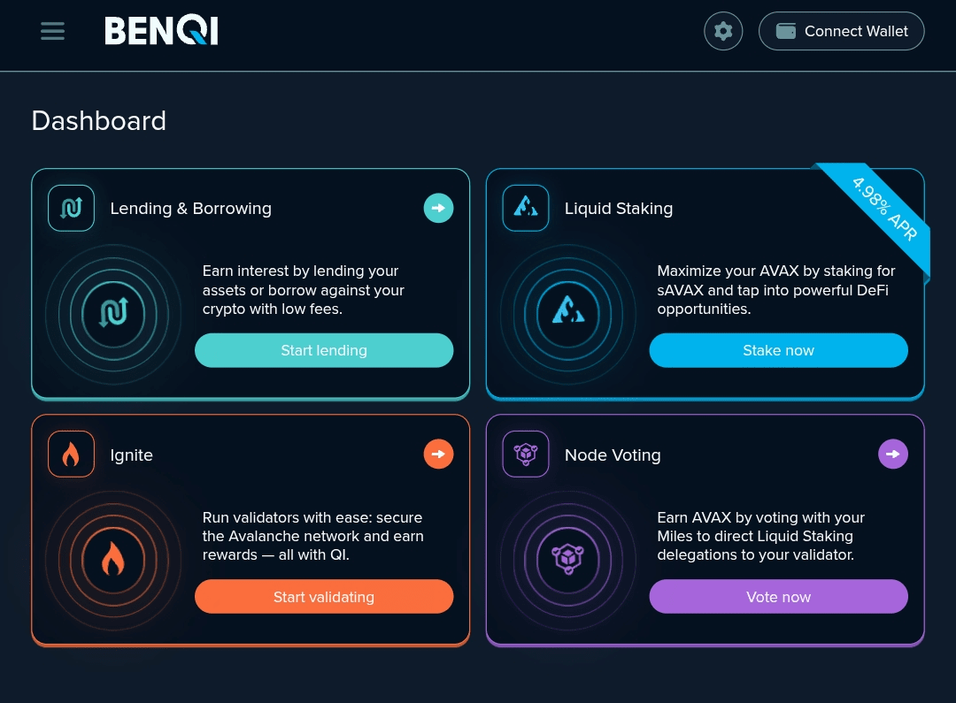启动 (运行验证者):用于运行验证者的工具,以保护 Avalanche,同时通过 $QI 激励获得奖励。
