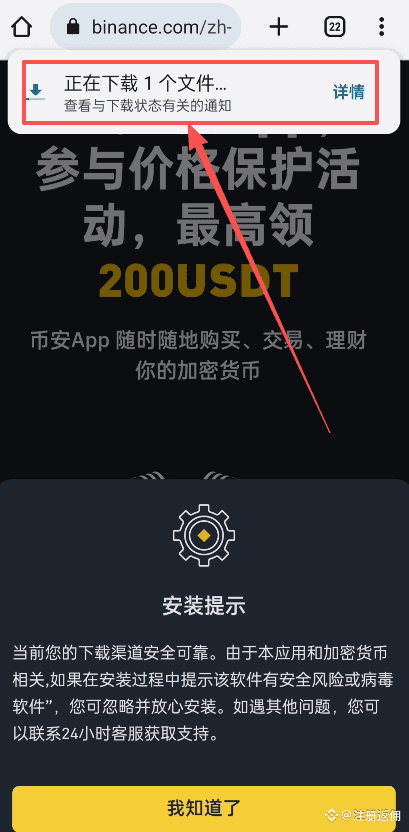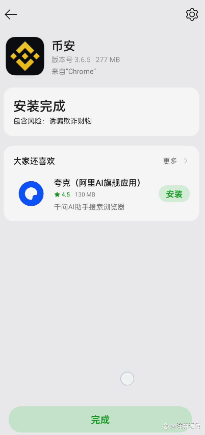 我们不用管它继续安装就好了。安装完成之后我们的币安交易所就下载好了。这就是币安安卓版的下载流程。