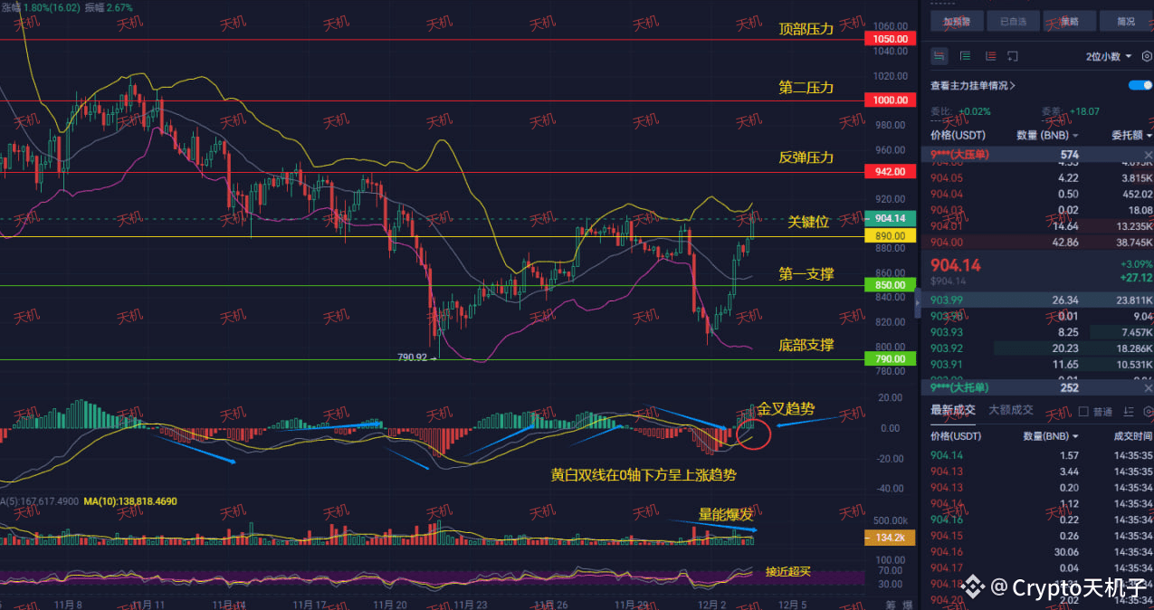 今天这波BNB,表面是“利好+技术反弹”,实则暗藏“庄家洗盘”的可能——942到底能不能站稳?1000是不是“诱多陷阱”?890破了会不会直奔850?这些细节,天机会在村里用“主力挂单数据+量能拆解”给你们扒明白!