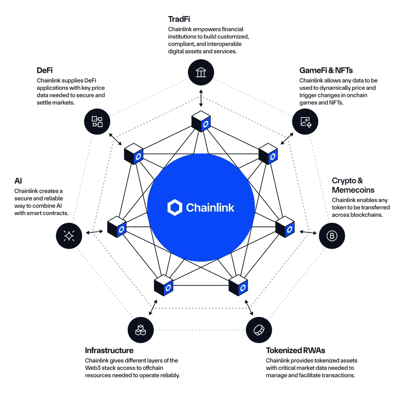 • 此外,Chainlink 不仅限于简单数据,还扩展其服务以涵盖多个区块链之间的互操作性,通过一种称为 CCIP 的协议,支持不同网络之间的数据和资产流动。