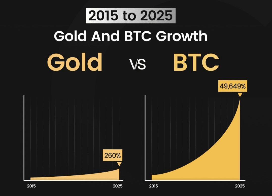 - 当世界数字化并繁荣(大规模机构采用,国家购买,数千亿通过ETF流动)→ 比特币上涨10–50倍,黄金(和代币化黄金)缓慢或横向上涨。
