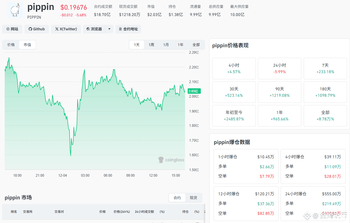 这 PIPPIN 最近热度是真炸,短短几天翻了好几倍,但暗雷也不少24 小时爆仓直接干到 555 万,空单就占了 335 万,说明之前赌它跌的全被拉爆了;但现在涨不动,就是因为 0.2188 那压力位跟堵钢筋墙似的,冲了好几次都没撞开,资金现在都不敢瞎往里砸了。