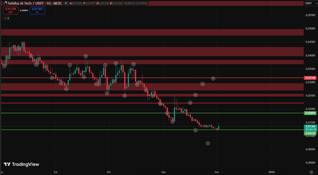 尽管面临这种压力,近期的温和反弹显示出买家并非完全缺席。尽管如此,直到出现明确的每日收盘高于 0.01859 USDT,主导趋势仍然是看跌。该区域标志著表明潜在稳定所需的第一个结构性里程碑。重新回归将把短期目标转向中期阻力层,市场记忆显示出相当的拥堵。
