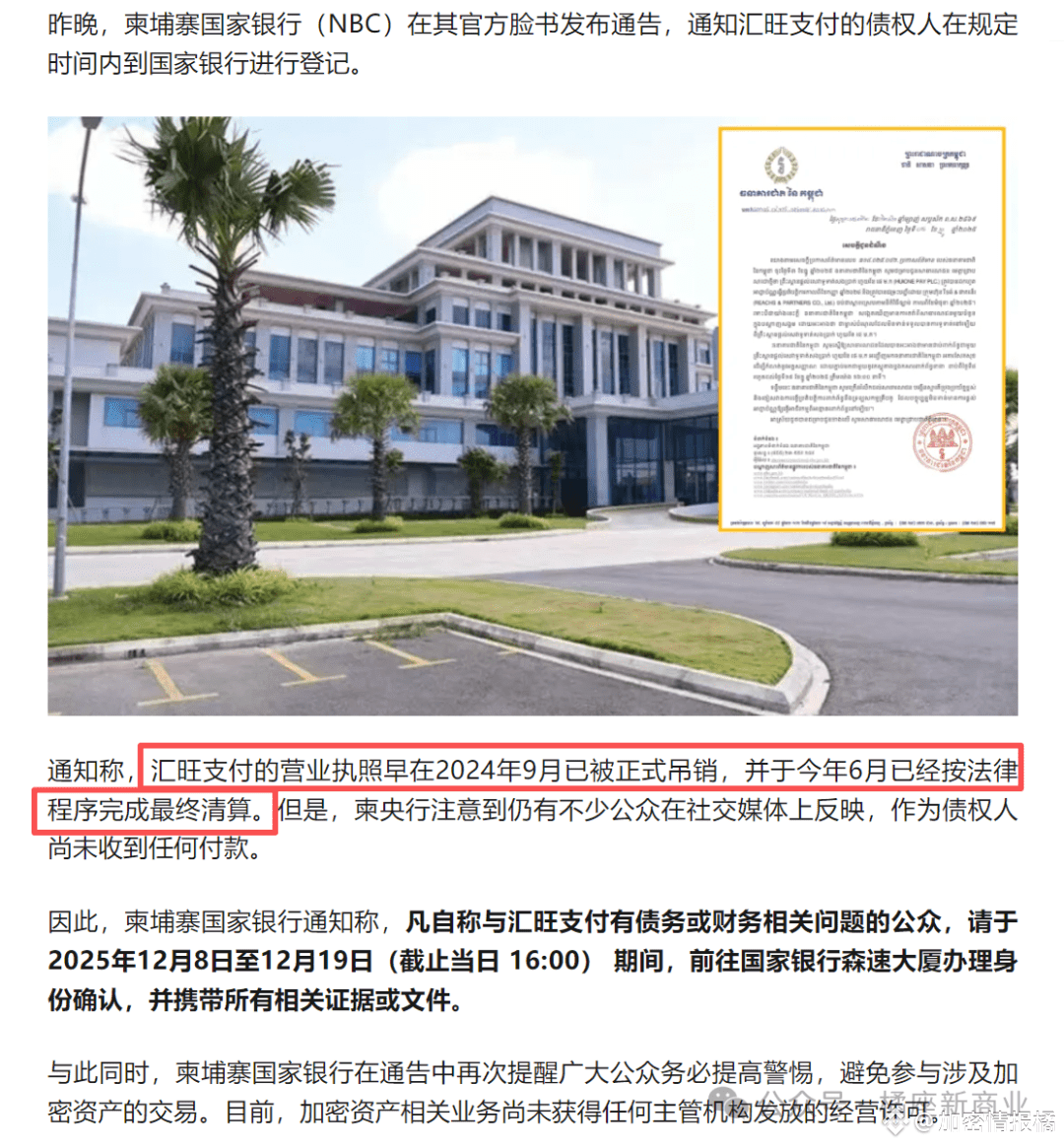 而神奇的是,早在去年9月份的时候,柬埔寨官方就吊销了汇旺支付的营业执照,并且在今年6月就完成了最终的清算,然后就发生了陈志比特币被盗走的事情。
