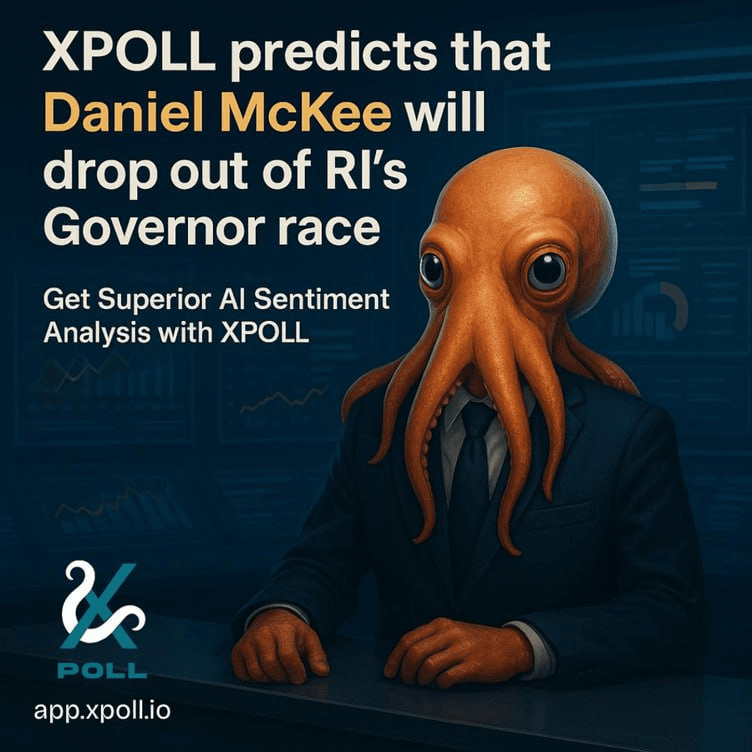 围绕罗德岛州州长竞选的当前读数突显了这样一个变化。根据 XPOLL 的情感指标,对丹尼尔·麦基的支持似乎正在减少,指标显示多个情感来源的势头正在减弱。这一下滑不是作为预测来框架,而是作为在线和离线情感线索如何开始与先前的民调路径分歧的反映。