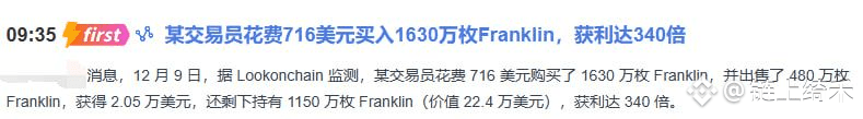 刷到那条新闻没?有人用700多刀滚到22万刀,340倍!就发生在Franklin上。我知道你心跳加速了,但别急,这种神话可遇不可求,盲目冲进去可能就是下一个接盘侠。