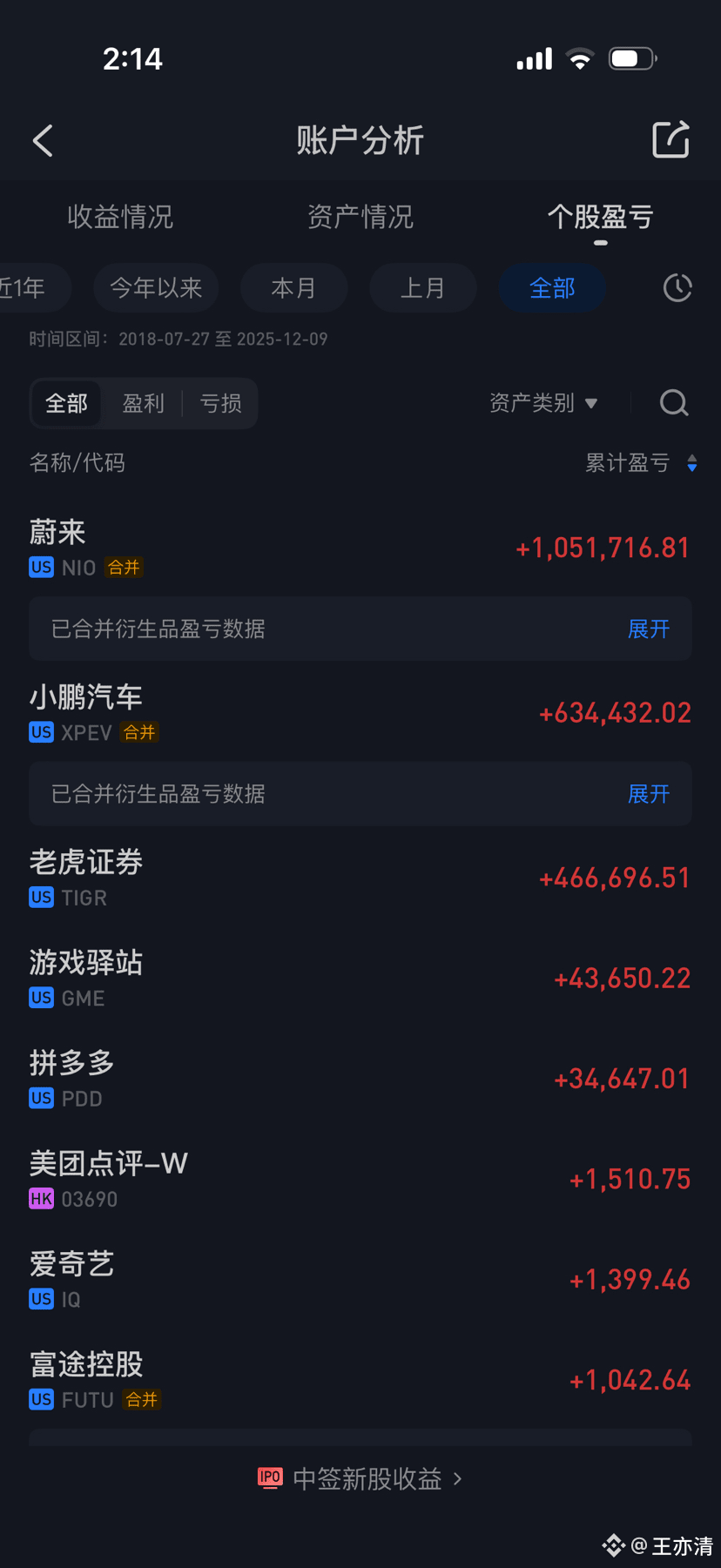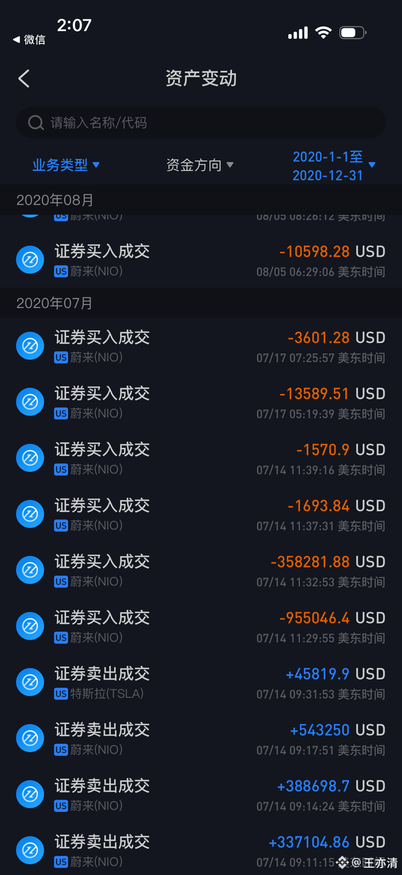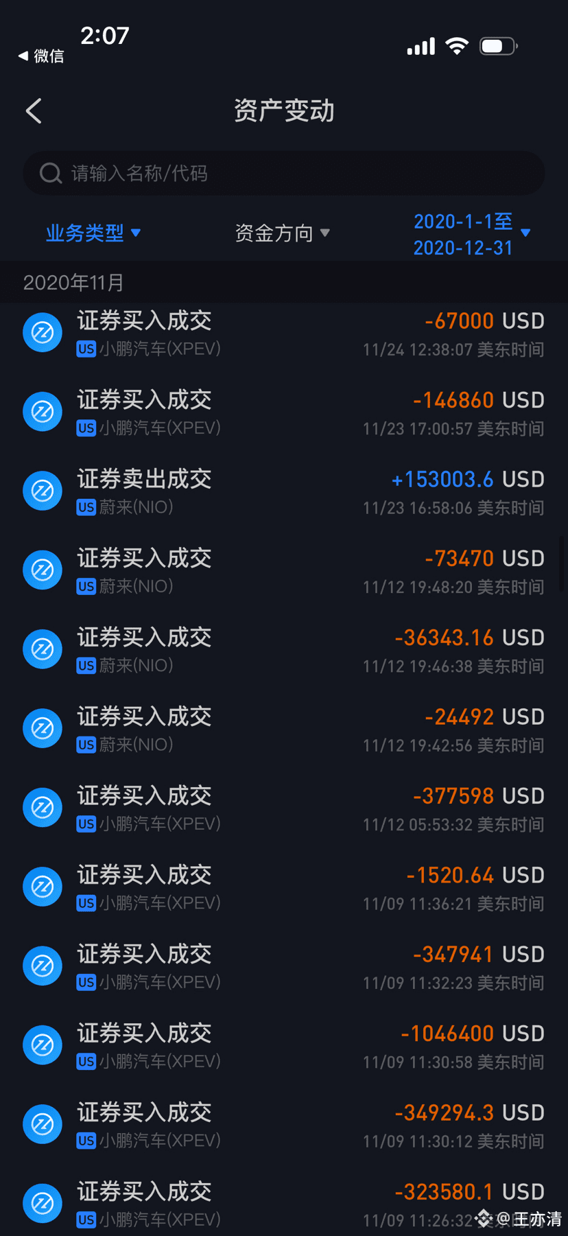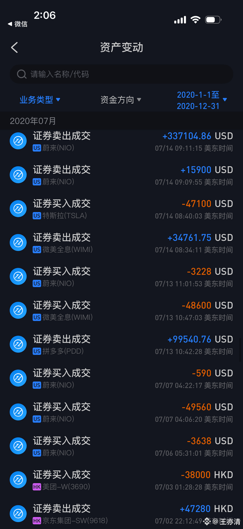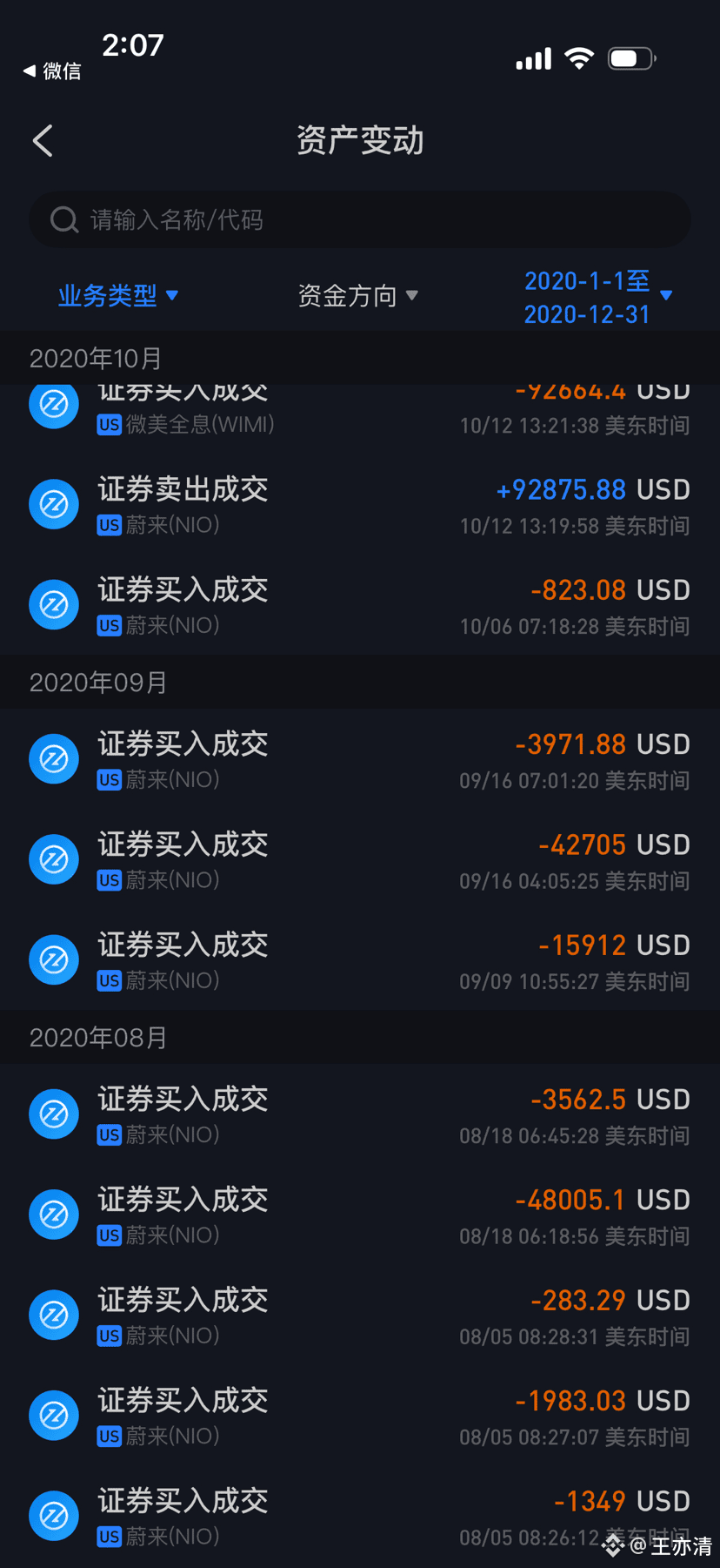 当时受益于美股大放水,新能源三杰蔚来,小鹏,理想,刚上市就暴涨,我当时陆陆续续入金吧,只买蔚来,从几块钱到三十多元的建仓价格,最终平均成本价格是17+,在这个时期,我没有加杠杆,一直到总资产达到了1000W人民币的时候。
