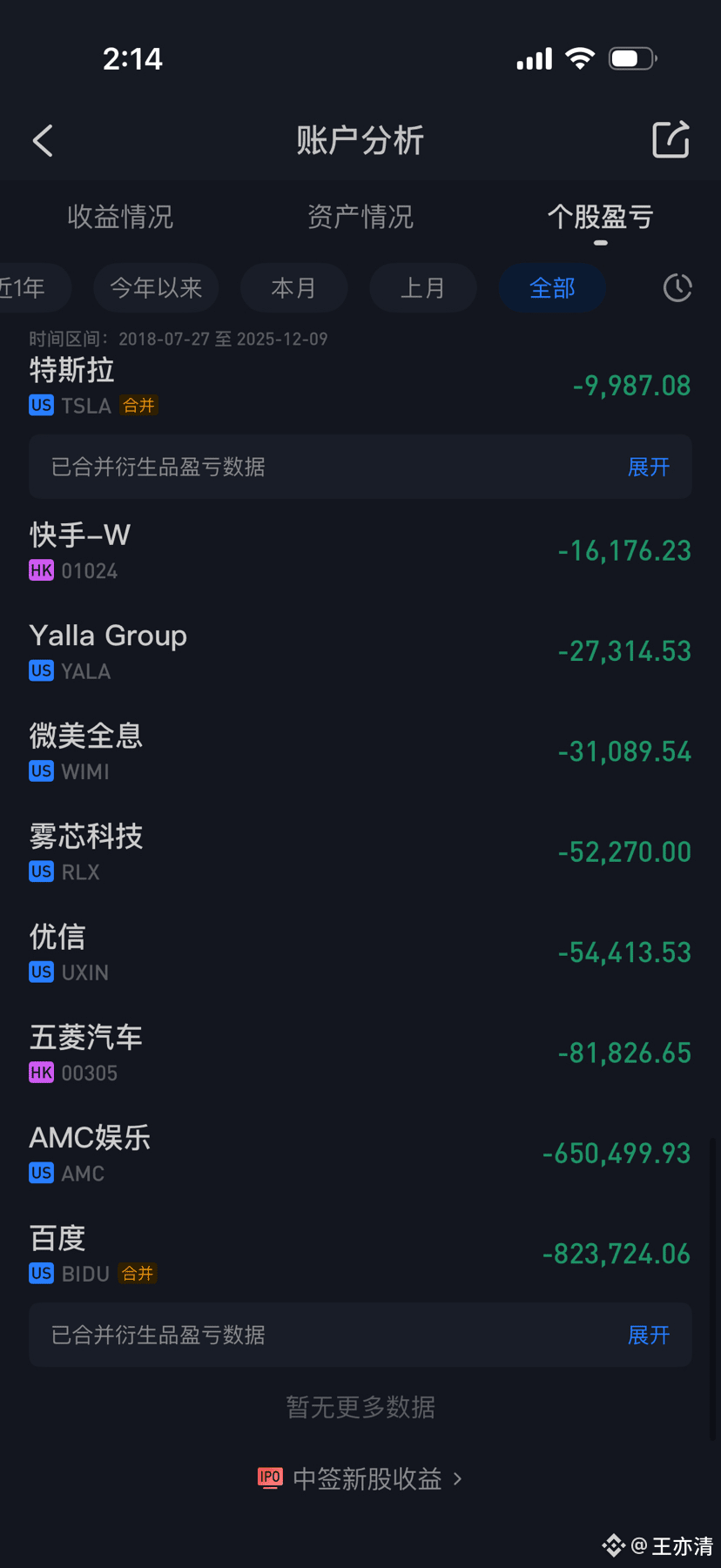 这个时候自己膨胀了,心中很痒,当时蔚来不能加杠杆,我于是把蔚来卖掉了,换成了小鹏汽车,加了一倍的杠杆吧,然后随后一路飞涨,自己家当市值最高达到3500W+。心里当时太贪婪,想到一个亿,别人建议我一部分抽出来,我没有采纳,后来遇到庄家洗盘,我一直硬抗,一直到只剩下1000W的时候,才平仓。这个时候呢,满脑子里想的就是回本,把自己的市值重新回去3500W,于是大量操作,亏损大概有个四百多万吧。后来看币圈涨幅度很猛,于是我从股市提了300W出来,在2021年5月17日,美元兑换成人民币,再换成了USDT,买了狗狗币,加了5倍杠杆。结果碰到了5.19号这个我永远也忘不了的时间,我之前使用的是HB,那天我一晚上没睡觉。账户也操作不了,结果大家是知道的,我爆仓了,300W一晚上清零。那个时候也是没有吸取教训,因为做灰产来钱快,持续入金,在2021年9年的时候,自己又冲了大概30W吧,九月份的时候,我看到HB通知,要求所有人把资金提走,因此我转到了币安,九月底,我被绑走了,坐牢四年一个月。最近才出来。账户因为强制性没办法操作,所以才能保存。不然按照我的估计,肯定也是要完蛋的。这四年时间内,账户一直没操作过,账户增长了一些,但是也没多少。最近我提了7000美金吧,换成人民币用来生活消费。自己现在寄居在亲戚家,33岁没房没车,压力巨大。不过好在是还有一些家当,准备这几年贷款买房。