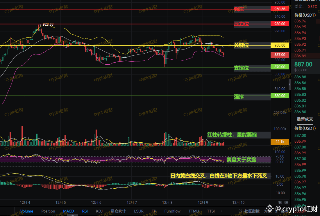 兄弟们,我是虹财!BNB昨天冲高没站稳,今天反复在900下方摩擦,它这波回调结束了吗?抄底的时机到了没?别急,虹财马上给你分析!