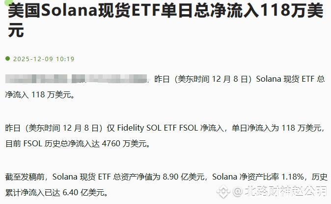 币友们,我是赵公明。一个反常的数据出炉:美国$SOL 现货ETF在一片看跌声中,依然净流入了118万美元! 钱虽然不多,但信号很关键——市场越恐慌,越有人在暗中行动。这到底是谁的“烟雾弹”,还是下跌末端的信号?关注赵公明,我用最直白的话,帮你拆解背后的博弈。