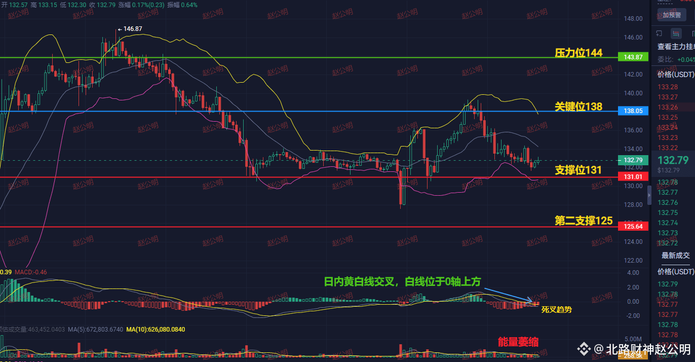 下方阶梯支撑:131是第一道防线,如果跌破,很大概率会去考验125的阶段性强支撑。这里可能是空头力量释放的目标区域。