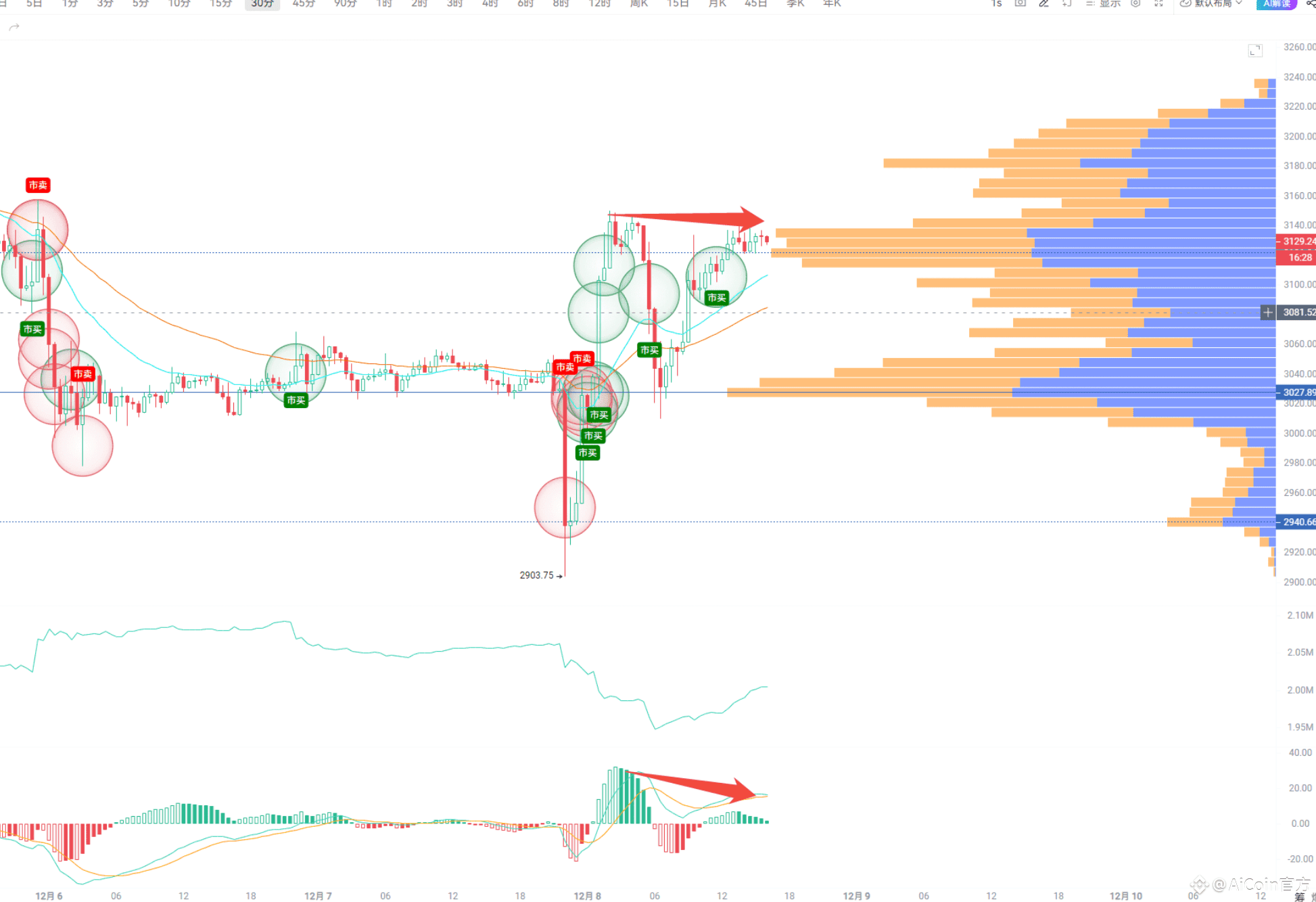 它的短期压力在 3200~3240(近期高点 + 主力挂的卖单),支撑则是 3035—— 这是近一周成交最扎堆的筹码峰。